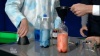 CAUTION: The unreacted hydrogen peroxide can irritate skin and eyes. Read the safety information on the hydrogen peroxide bottle and be sure to wear safety goggles.